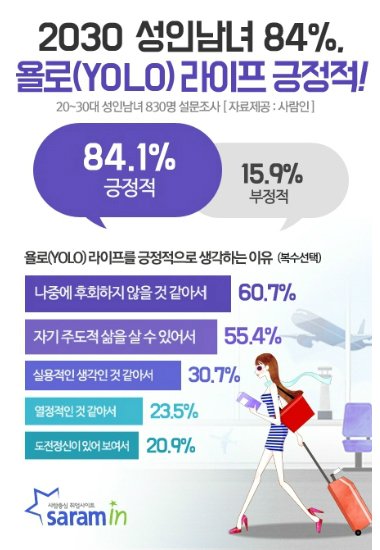 ◇ 정관용> 우선 이 욜로라고 하는 이것도 일종의 신조어인데 이렇게 일반화되기까지의 과정을 좀 살펴볼까요.