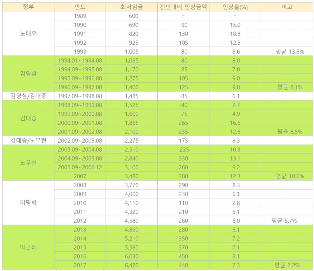 2000년 이후 지금까지 최저임금은